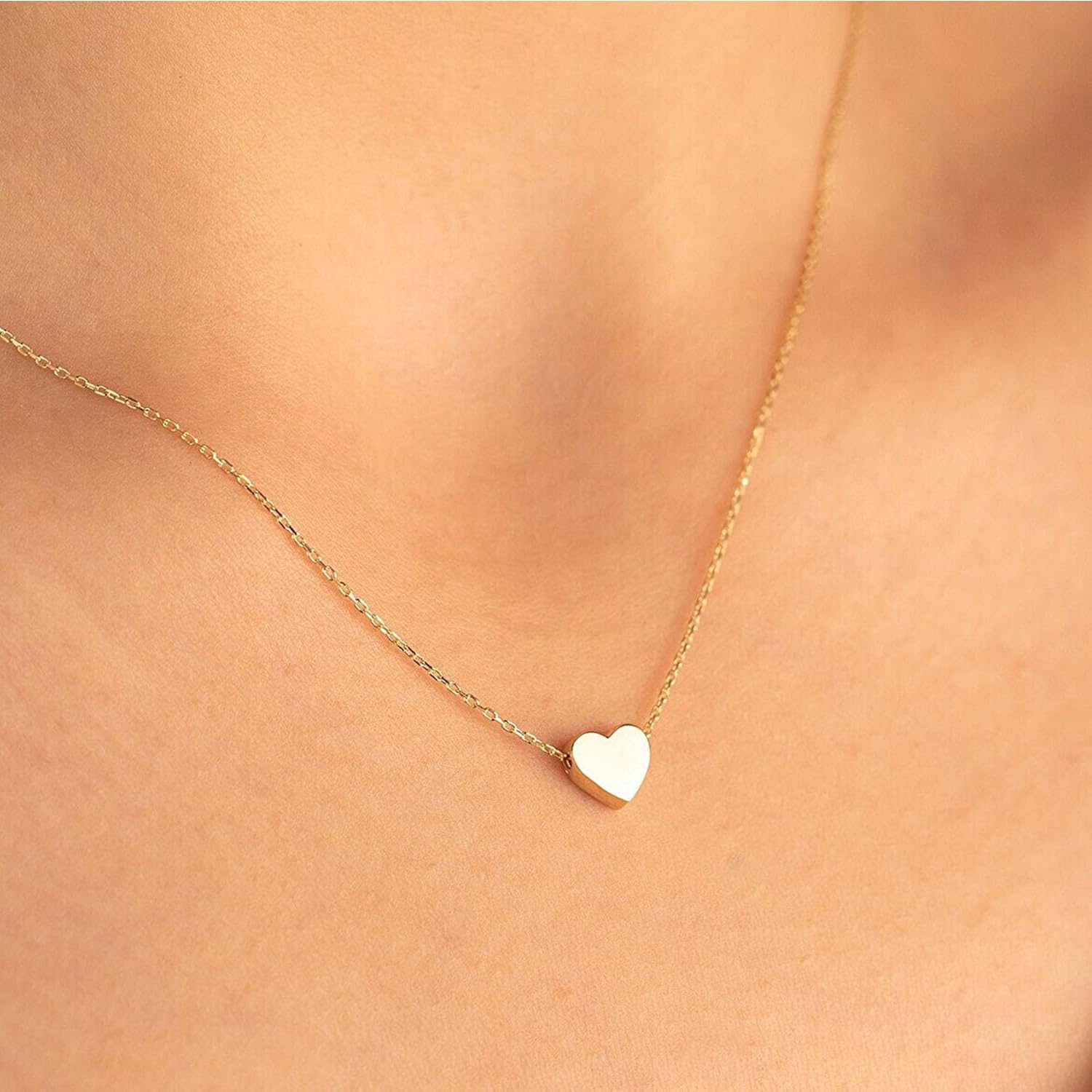 Introducing our stunning Dainty Gold Necklace for Women, a must-have addition to any jewelry collection. Crafted with care and precision, this necklace features a beautiful heart pendant, disc circle, and bee choker design, adding a touch of elegance to any outfit.